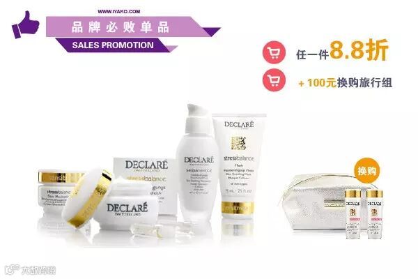 迪凯莉:任意一件8.8折;购买任意迪凯莉产品,100元换购迪凯莉旅行组(洁面粉20g+净肤水50ml+金色化妆包)一组