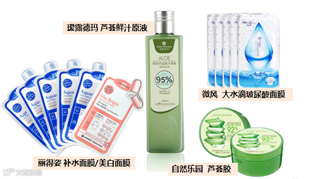 晒后修复产品效果最快的当属面膜和水膜。选择有美白成分的面膜帮助能阻截击退黑色素,或者直接用芦荟水做成补水面膜,促进肌肤保湿持久度,加快新陈代谢,使肌肤回复透明弹性质感。