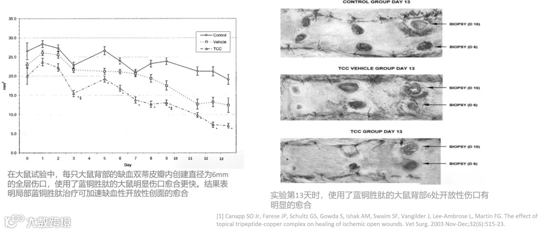 [3] Canapp SO Jr, Farese JP, Schultz GS, Gowda S, Ishak AM, Swaim SF, Vangilder J, Lee-Ambrose L, Martin FG. The effect of topical tripeptide-copper complex on healing of ischemic open wounds. Vet Surg. 2003 Nov-Dec;32(6):515-23.