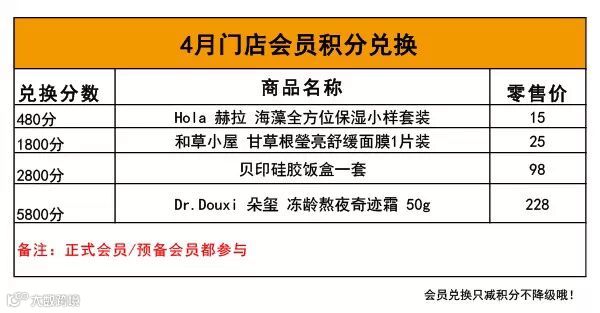 会员积分兑换免费送。只要你是艾雅可的会员,并且消费积分累计达到480分或以上,就可以亲临咱们的各大门店,免费拿走保湿套装、面膜、日本无硅胶饭盒和面霜等礼品哦~
