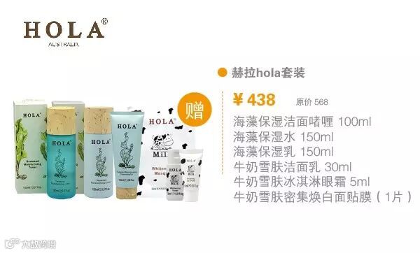 海藻保湿洁面啫喱100ml、海藻保湿水 150ml、海藻保湿乳 150ml、牛奶雪肤洁面乳 30ml、牛奶雪肤冰淇淋眼霜 5ml、牛奶雪肤密集焕白面贴膜(1片) 原价:568元 特价:438元
