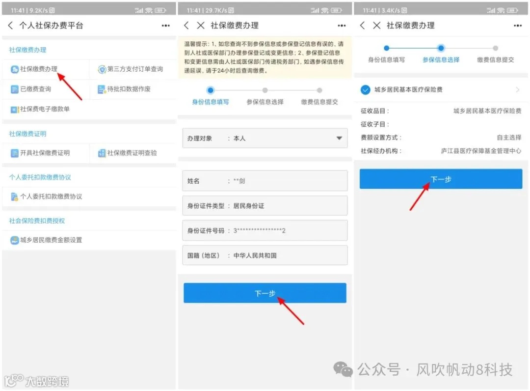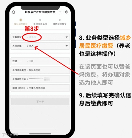 简化步骤:点击【市民中心】-【社保】-【社保缴费】-【社保缴费办理】-【下一步】-【城乡居民医疗保险费】-【下一步】。