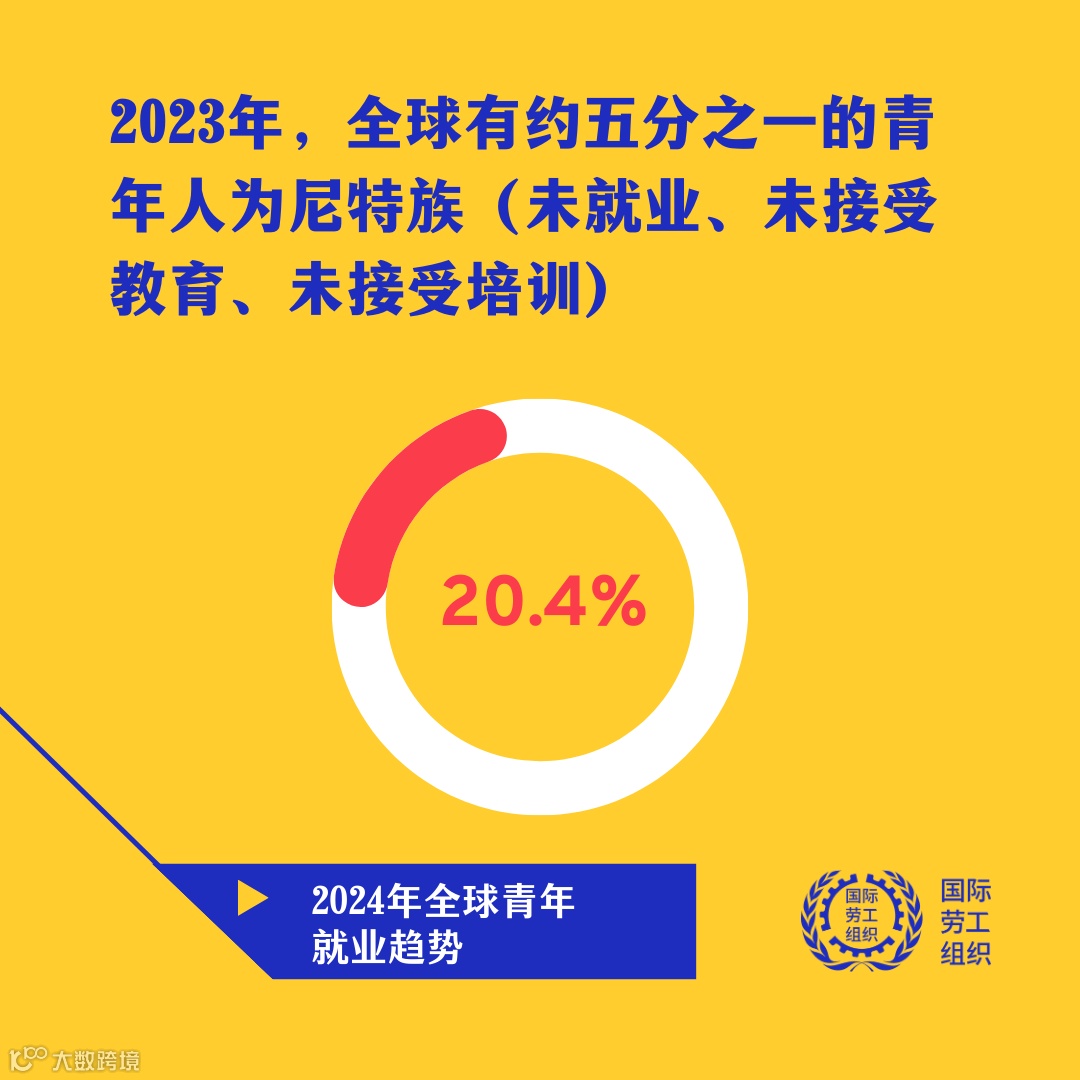 2023年,全球青年失业率为13%,相当于6490万人,比疫情前2019年的13.8%有所下降,实现了15年来的最低水平。