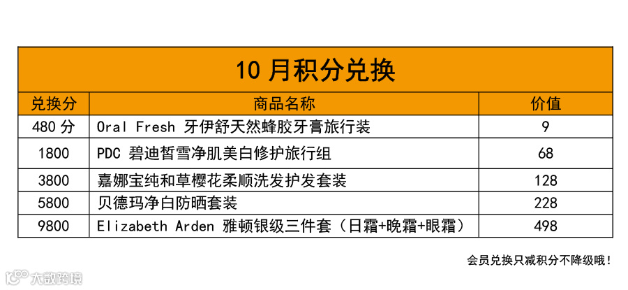 10月会员兑换礼品清单: