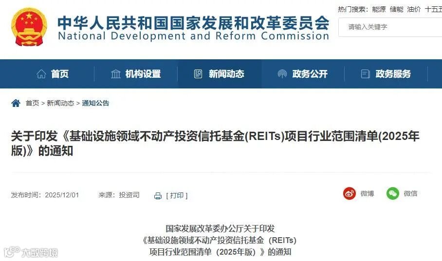 为更好发挥基础设施领域不动产投资信托基金(以下简称“基础设施REITs”)盘活存量资产、促进投资良性循环的作用,近日,国家发展改革委办公厅印发《基础设施领域不动产投资信托基金(REITs)项目行业范围清单(2025年版)》(以下简称《清单》),对基础设施REITs发行范围作了进一步拓展。