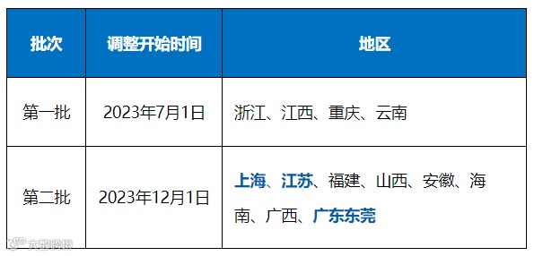 涉及流程调整的地区有: