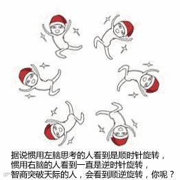 【据说习惯用左脑思考的人,看到的是顺时针;惯用右脑的人,看到的一直是顺时针;智商突破天际的人,能够看到顺逆时针旋转】