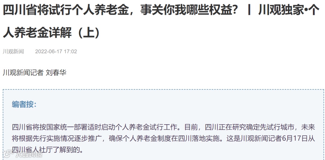 在上一期文章中,小编和大家一起捋了捋国家层面推动个人养老金发展的有关时间线,分享了释放的有关信号。今天,再和大家一起猜一猜,什么样的城市能够进入个人养老金试行城市名单?同时,小编将会持续关注有关动态,及时分享更多的个人养老金信息。