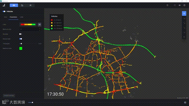目前,传统宏观模型在面向运营级的城市治理上精细度不足,如作为城市交通延误影响最大的交叉口,难以分析其饱和度、延误、排队长度等指标;而传统微观模型建模范围较小,往往局限较小片区的仿真,效率难以适应行政区级治理诉求。广交研开发了中观仿真模型,具有对大范围、大车流路网快速仿真的适应性,区级交通治理模型推广应强化中观动态交通仿真模型开发。广交研交通模型未来将持续由规划级模型到运营级模型转变,适应高频、精准应用场景,提升城市模型治理精细化水平。