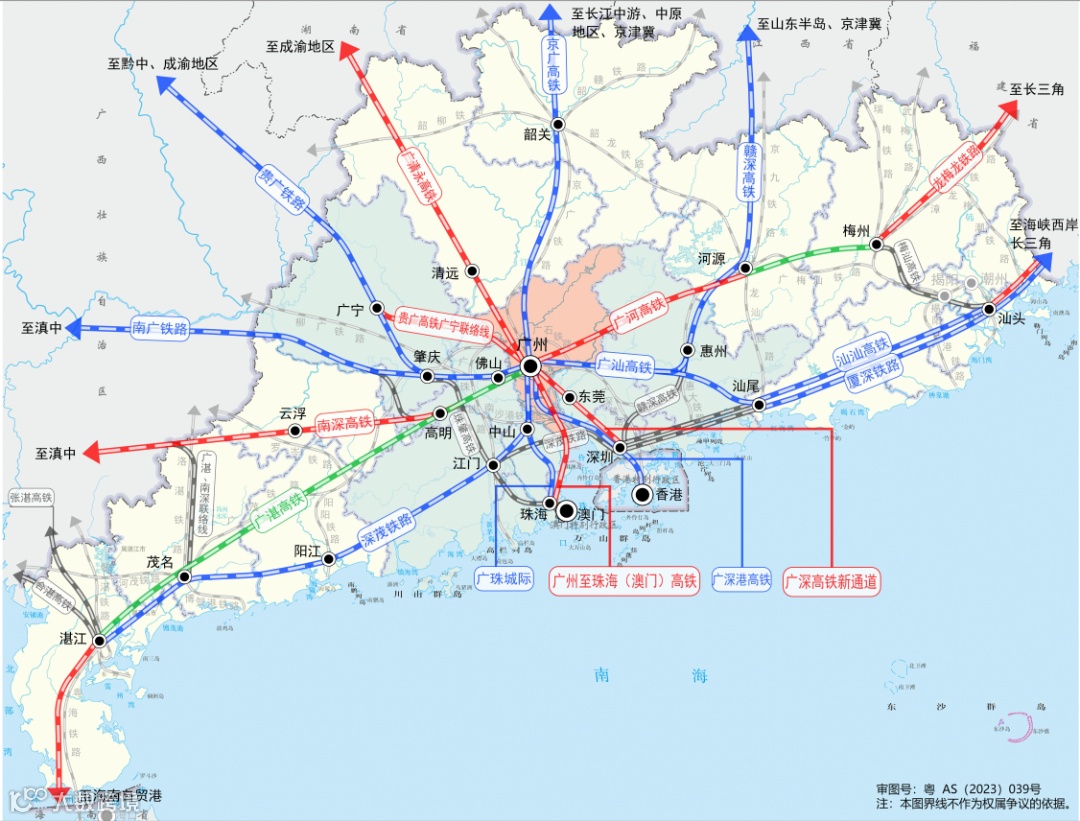 ——至2035年,开行更多国际班列,全面强化广州面向东南亚、南亚、中亚、欧洲的陆路通道,全面对接融入欧亚大陆桥和泛亚铁路通道。