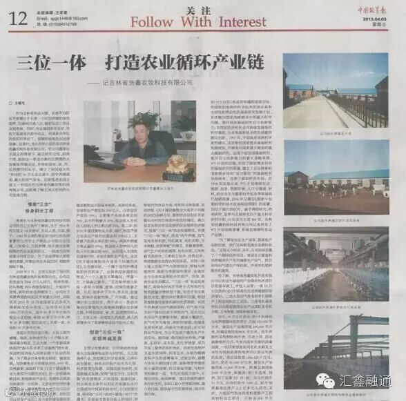浩鑫集团2013年被长春市政府授予行业龙头企业,在2014年10月全国农牧业节能减排工作会议上,参会代表对集团生产基地进行了参观并给予了高度赞誉并授予集团公司为节能减排先进摸范单位。2015年被誉为全国行业龙头企业示范单位。(待续)