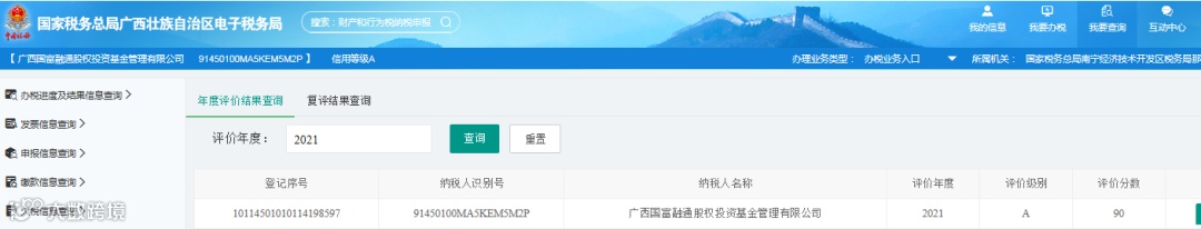 近日,国富融通被广西壮族自治区税务总局评定为“2021年度纳税信用等级A级纳税人”,国富融通已连续两年获此殊荣。