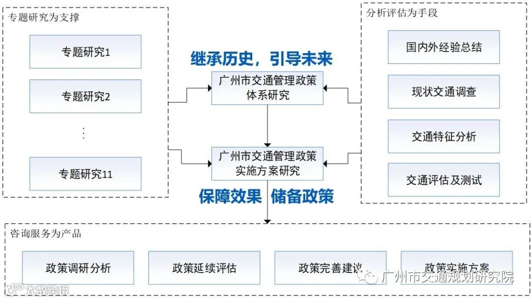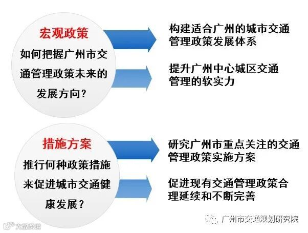(一)本次研究从宏观政策与措施方案两个层面找准政策发展方向,构建适合广州的城市交通管理政策发展体系,研究广州市重点关注的交通管理政策实施方案,促进交通健康发展。
