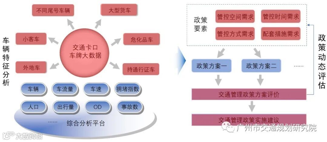 (三)构建交通管理政策的智慧分析方法。研究以人车路多源数据为基础,以车牌大数据为核心,以政策构成要素为抓手,构建“车辆特征分析+政策动态评估”的分析方法,对各种交通管理政策方案分析提供支撑。