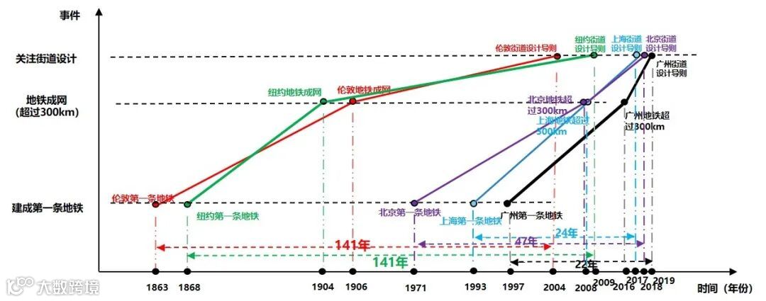 图1 全球重要城市地铁和街道设计建设发展历程