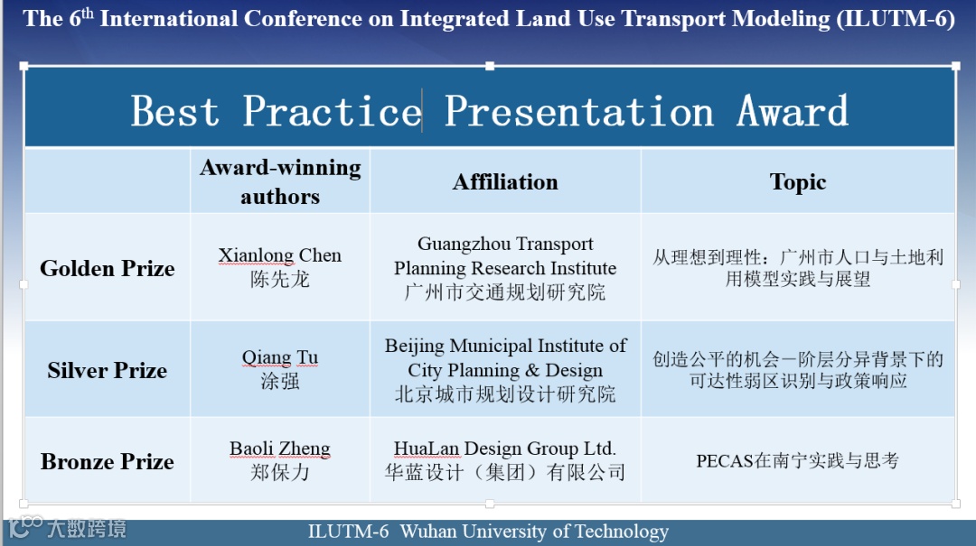我院信息模型所陈先龙在论坛所作的《从理想到理性:广州市人口与土地利用模型实践与展望》,喜获“最佳实践报告奖”金奖。