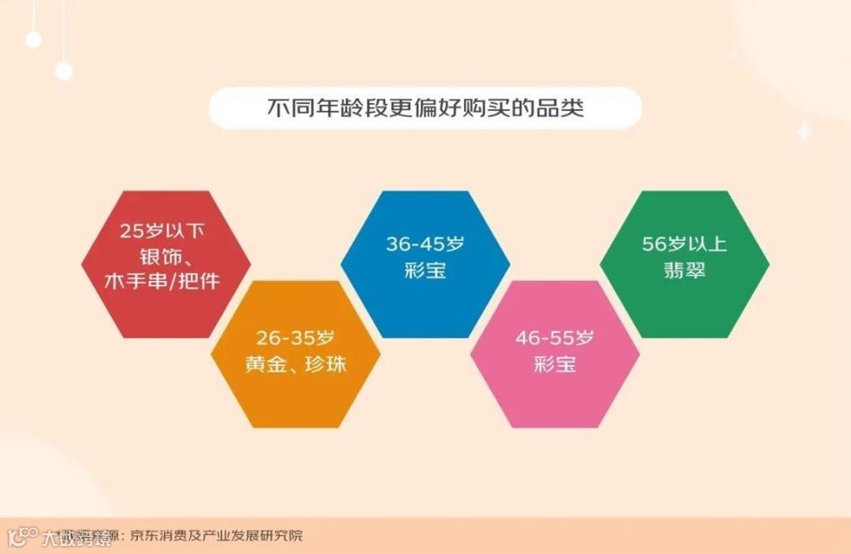 据京东数据显示,35岁以下的消费者成交额占比高达67%,已成为线上珠宝消费的主力军,其中25岁以下占11%,26-35岁占56%。这一方面说明年轻一代对于珠宝首饰的需求逐渐增加;另一方面也显示出不同年龄段人群的消费习惯差异,年轻人对于电子产品的使用更熟练,对双十一的各项规则更熟悉。
