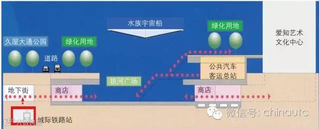 清除枢纽与周边地区之间的物理性障碍,如缩短步行距离、减少乘客在站内的上下移动、减少乘客与机动车交通的交织等,对于提高枢纽至周边地区的交通衔接便利性尤为重要。通过建设人行地道、人行天桥等,使乘客与机动车完全分离、为乘客提供安全舒适的联络通道。同时,为吸引更多乘客、促进车站周边地区的发展,应将不同方向的客流流线整合,使其与城市功能的主要布局方向保持一致。