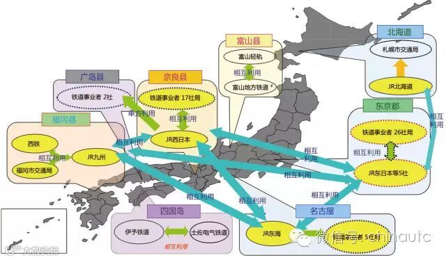在日本,IC卡基本是以都市圈为单位发行,各都市圈内的交通运营管理相关单位采用统一规格的IC卡,在该都市圈内的各家交通公司均可使用。随着人们出行范围不断扩大,与其他都市圈交通IC卡的通用需求也在不断提高。2013年起,JR的五家公司和东京圈、名古屋圈、京阪神圈以及九州圈的民铁线公司共计发行了10种交通IC卡,并实现了通用化,有效降低了乘客在不同都市圈均需要换卡缴费换乘的不便,并节省了换乘费用,减少旅客因多次换乘而产生的烦躁与不适,如下图所示。