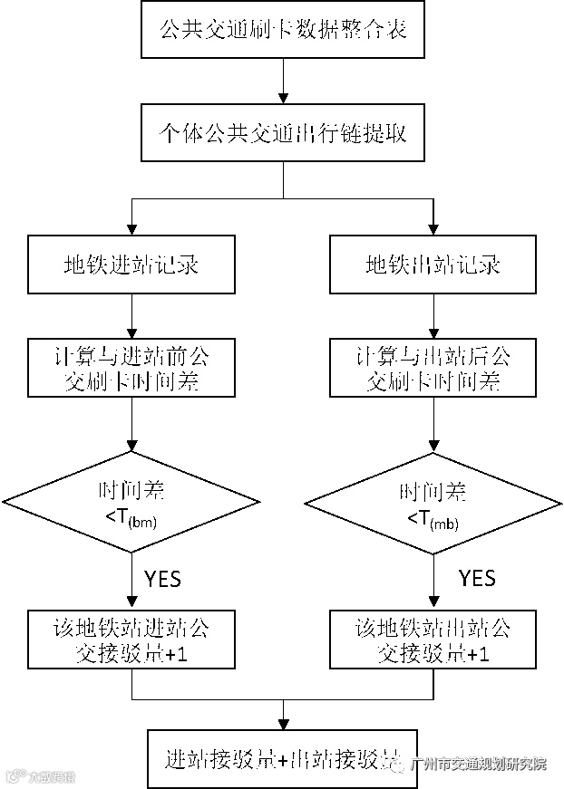 基于以上分析地铁站点公交换乘接驳算法实现流程如图2所示,根据上述算法,对公共交通刷卡数据整合表进行完整遍历后,计算得出广州市各地铁站点的换乘接驳比例如表4所示。