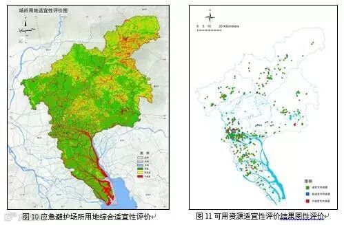 根据应急避护场所用地综合适宜性评价图与现状可用资源的叠加分析,选取出适宜、较适宜、不适宜的可用避护资源,筛选出现有应急避护资源的具体分布,为布局选点提供依据。