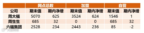 2021/2022上半财年周大福、周生生、六福集团内地网点数变化