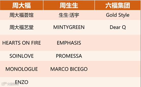 周大福、周生生、六福集团子品牌矩阵
