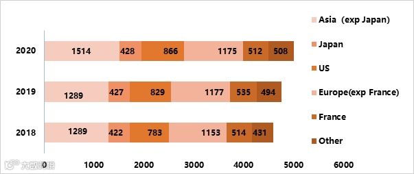 LVMH2018-2020年区域实体门店数