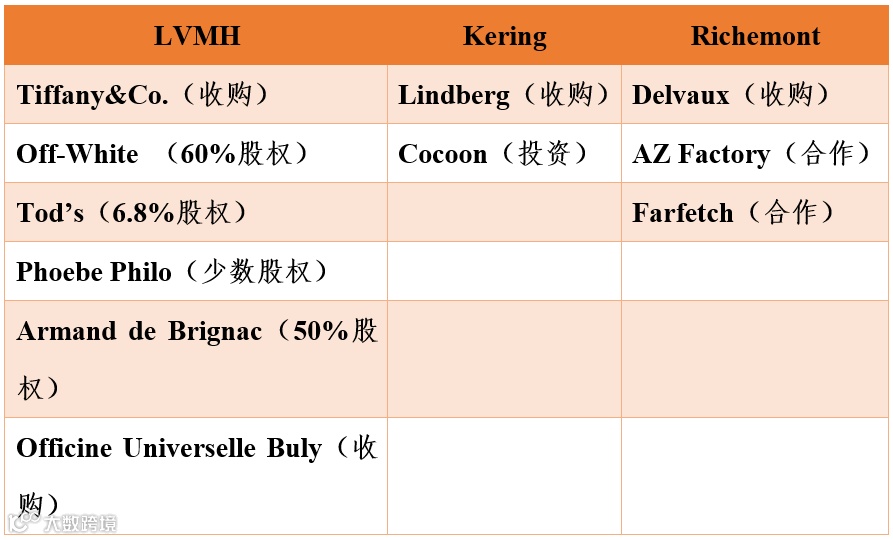 三大奢侈品集团2021年部分投资并购企业