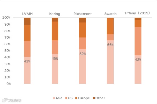 奢侈品集团地区市场占比