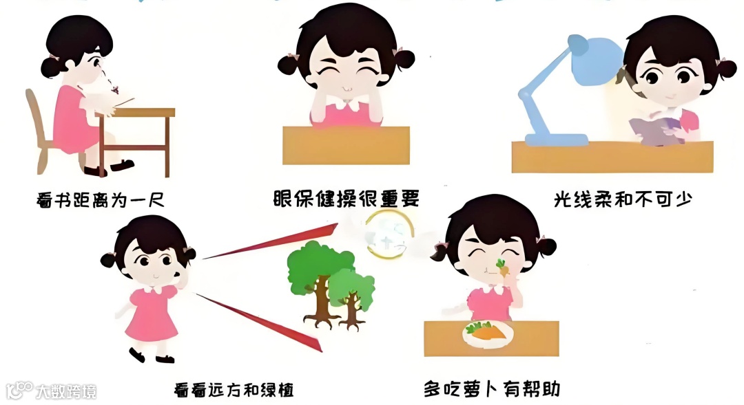 均衡饮食:多吃富含维生素 A、C、E 和叶黄素等营养物质的食物。维生素 A 有助于视网膜的正常发育,可从胡萝卜、动物肝脏等食物中获取;维生素 C、E 是抗氧化剂,能够保护眼睛免受自由基的伤害,新鲜的水果和蔬菜是很好的来源;叶黄素对视网膜黄斑区有重要的保护作用,常见于绿色蔬菜、玉米等食物中。