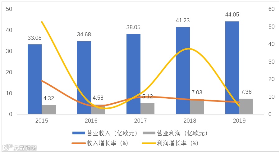 根据Euromonitor的数据显示,近几年受全球经济增长趋缓的影响,全球的珠宝市场规模增速趋缓,其中2015、2016年度甚至出现了负增长,而LVMH集团的珠宝业务保持了持续稳定的增长,营业收入和营业利润均呈现出连续上升态势。