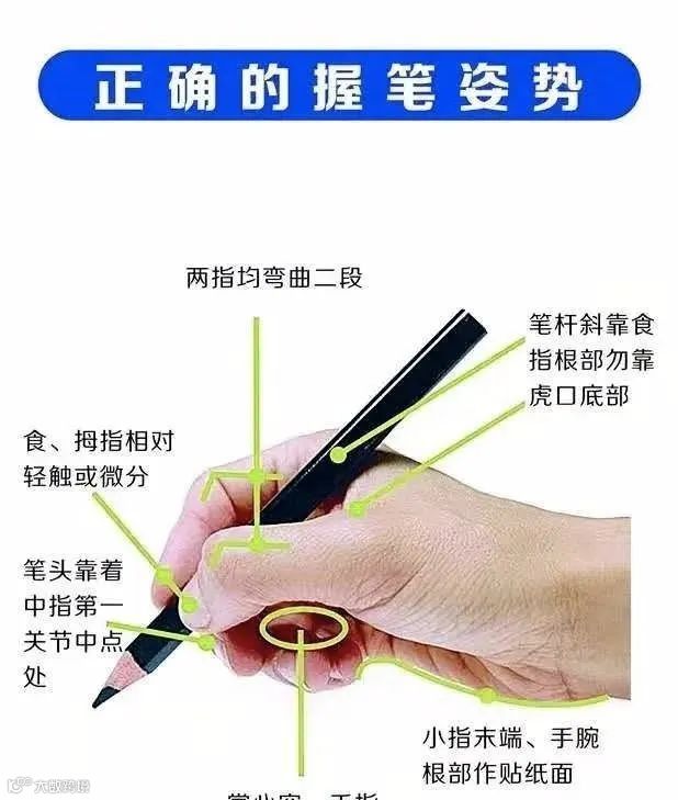 手指与笔尖距离太近、拇指与食指交叉、握笔姿势不正确,从而导致低头、歪头、伸颈、驼背、两肩不平等。