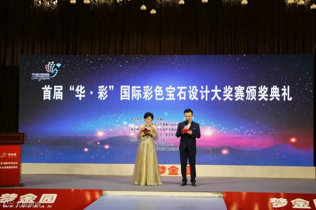10月15日晚,首届“华·彩”国际彩色宝石设计大奖赛颁奖典礼在“中国蓝宝石之都”山东昌乐隆重举行。中国珠宝玉石首饰行业协会副会长兼秘书长毕立君,中国珠宝玉石首饰行业协会书记、副秘书长、中宝协彩宝分会秘书长、中宝协基金公司执行董事沙拿利博士,中宝协彩宝分会会长、深圳市黄金珠宝首饰行业协会执行会长杨绍武,山东省珠宝玉石首饰行业协会会长、梦金园黄金珠宝股份有限公司董事长王忠善,山东省珠宝玉石首饰行业协会执行会长王学尧,深圳赛菲尔珠宝首饰有限公司董事长王义善,深圳市星光达珠宝实业有限公司董事长林畅伟,深圳市鹤麟珠宝有限公司董事长周祝健,中国珠宝玉石首饰行业协会办公室主任,中宝协首饰设计委员会秘书长吕海燕,昌乐县副县长郭雪梅等领导嘉宾,2020宝博会筹委会有关领导,珠宝企业代表,部分获奖选手等100余人出席此次颁奖典礼。