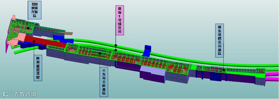 福州火车站东侧临近既有运营隧道,且二者之间长距离并行473.3m,既有运营隧道与车站围护之间的水平净距4.56~15.47m,隧道埋深与基坑底齐平。面对与既有地铁线长距离并行、高承压水位地质等难题,设计团队以“微扰动”为核心设计理念,构建了一套刚柔并济的协同控制体系。通过“全套管咬合桩+MJS主动隔离”形成刚性屏障,并结合“分区跳仓开挖”与“钢支撑自动伺服”系统实现施工过程的动态精准控制,同时以“纵向拉紧”与“动态回灌”等工法,主动强化既有隧道结构并平衡水文环境。最终,在近乎严苛的控制标准下,成功将运营中地铁隧道的变形控制在“毫米级”,以匠心智慧实现了新建工程与城市既有脉络的安全共生。