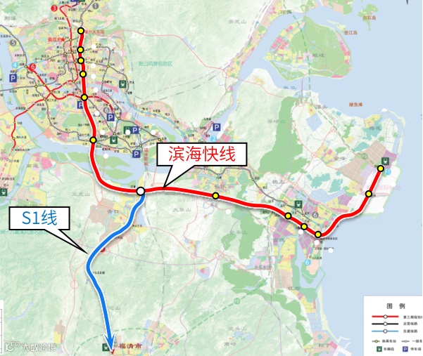 滨海快线全长62.4公里,设站13座,设计时速140公里,起于福州火车站,途经晋安区、鼓楼区、台江区、仓山区、闽侯县、长乐区,串联主城、滨海新城、长乐国际机场,终于文岭站,贯穿福州主城与滨海新城,串联福州火车站、长乐国际机场等重要枢纽,是实现“主城—新城”快速联系、推动沿江向海发展战略的核心工程。