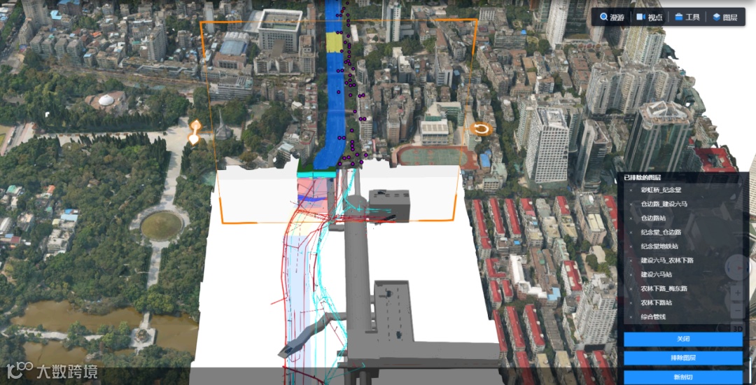 在广州地铁首次提出采用多源数据融合技术,将三维实景模型应用于地铁线路辅助选线、交通疏解、管线迁改、风险源识别展示、三维仿真等方面,目前已经广泛应用于广州、深圳、苏州等新线设计。
