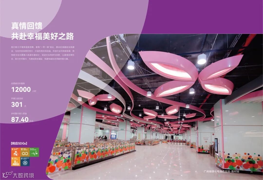 公司肩负文化传承重任,在规划设计中将非物质文化遗产元素融入装修方案,不断延续中华优秀传统文化的生命力;积极响应国家“一带一路”倡议,畅通区域交通动脉。同时,公司通过资源共享与优势互补广泛参与行业交流与合作,全年与同行/外单位签订17项战略合作协议,共建行业未来。在社会公益方面,公司积极开展丰富多样的公益慈善活动,以公益设计赋能乡村振兴,将发展成果惠及社会。