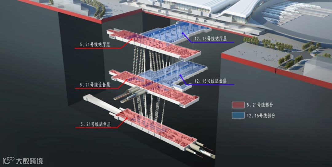 车站柱跨在西安首次采用24m大跨,4线车站共厅,与国铁采用分层单循环换乘,打造通透、开敞、便捷的优质地下交通空间,极大提升了乘客的出行体验。
