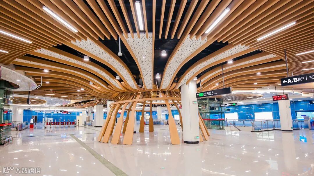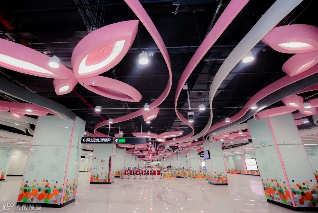 为打破车站与地块通道连接的传统模式,在车站主体土建封顶的情况下,设计外扩一跨站厅的方案,使站厅公共区、换乘通道与商业下沉广场无缝链接,不仅可实现地铁车站和周边物业共赢互通,整体空间也将成为一座以地铁为主导的地标建筑。