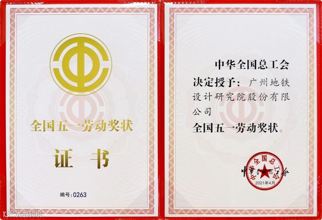 4月27日,2021年庆祝“五一”国际劳动节暨“建功‘十四五’、奋进新征程”主题劳动和技能竞赛动员大会在北京举行。广州地铁设计研究院股份有限公司被中华全国总工会授予“全国五一劳动奖状”。