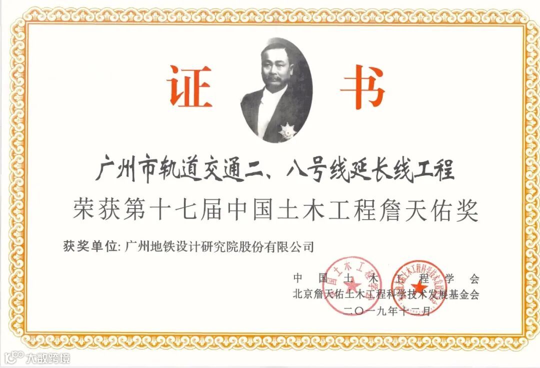 近日,第十七届中国土木工程詹天佑奖评选结果正式揭晓,我院牵头设计的广州地铁二、八号线延长线工程和参与设计的成都地铁二号线工程,双双荣获中国土木工程詹天佑大奖,获奖数量创历史最好成绩。据悉,中国土木工程詹天佑奖由中国土木工程学会和北京詹天佑土木工程科学技术发展基金会联合设立,是中国土木工程领域工程建设项目科技创新的最高荣誉奖。