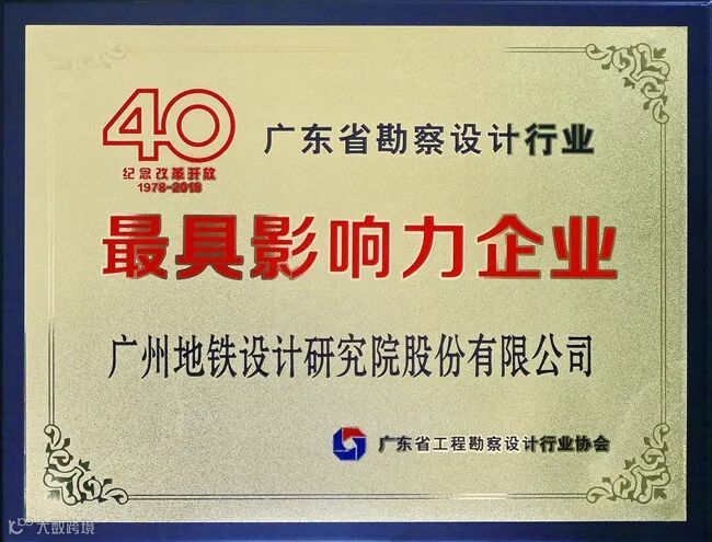 大会表彰了一批为广东建设事业做出积极贡献的单位和个人。为庆祝改革开放40周年,省协会在2018年11~12月间举办了“广东省勘察设计行业表彰活 动”。在活动中,我院荣获“广东省勘察设计行业最具影响力企业”称号。