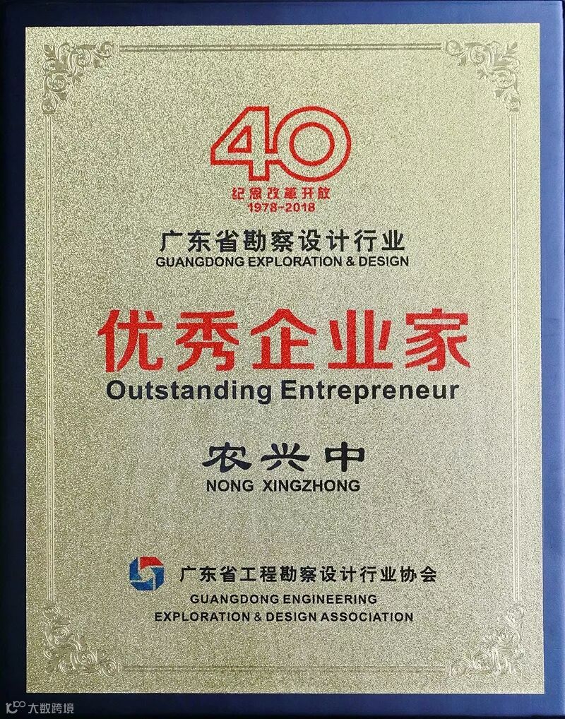农兴中院长荣获“广东省勘察设计行业优秀企业家”称号,研发中心室主任阳彬武荣获 “广东省勘察设计行业优秀工作者”称号;