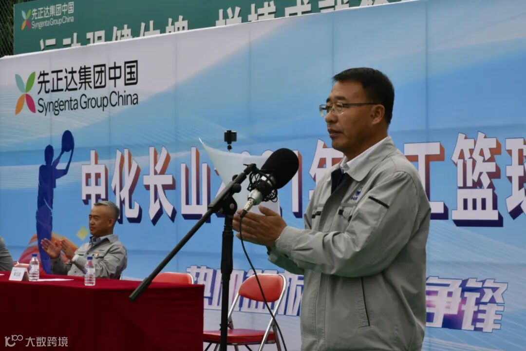 复合肥副总经理、党支部书记张国纪为篮球赛开球