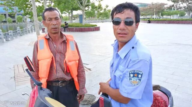 拉陈果和孩子上岸的维吾尔族保安和环卫工人