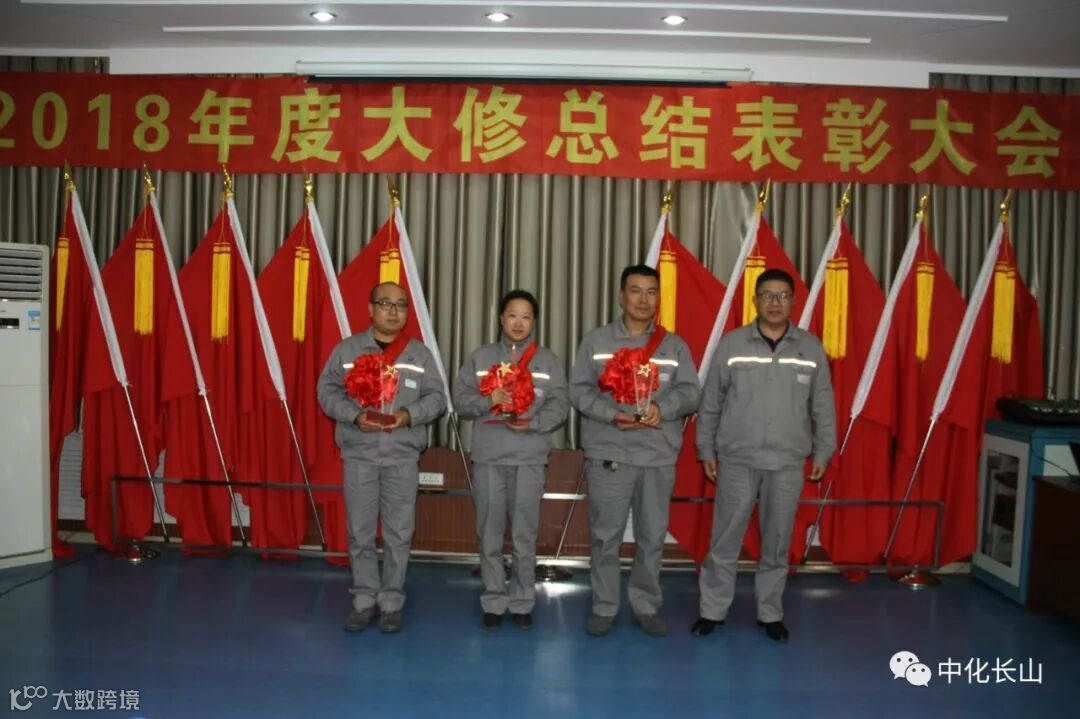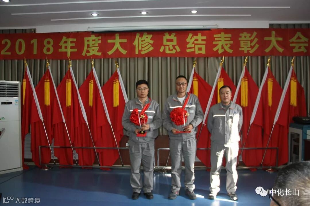 🌿在颁奖仪式上,中化长山公司领导王力刚、谢德全、王强、宋云武、黄伟胜分别为3个获得特殊贡献奖的集体和个人、2个红旗党支部、6名优秀指挥员和16名大修标兵颁奖。受表彰人员身披红花、手捧奖杯,脸上洋溢着喜悦的笑容,赢得与会人员的阵阵掌声