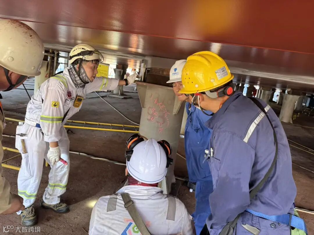 夏日骄阳炙烤通州湾基地,FSO结构检验人手吃紧,结构检验工程师谢晓武主动扛起内外检统筹重担。