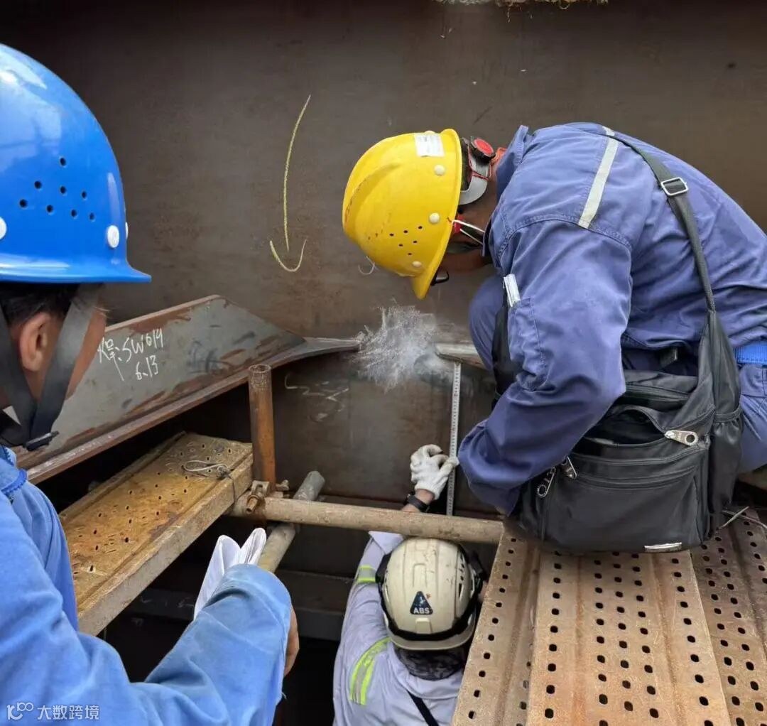 高温下钻进闷热的船舶分段、搭载舱室,汗水浸透工装也顾不上擦,专检时紧盯每处结构细节,一丝不苛;外检时高效组织,流程顺畅。最终以扎实负责的作风,赢得船东、船检一致好评,工装上的汗碱印,正是他坚守现场的勋章。