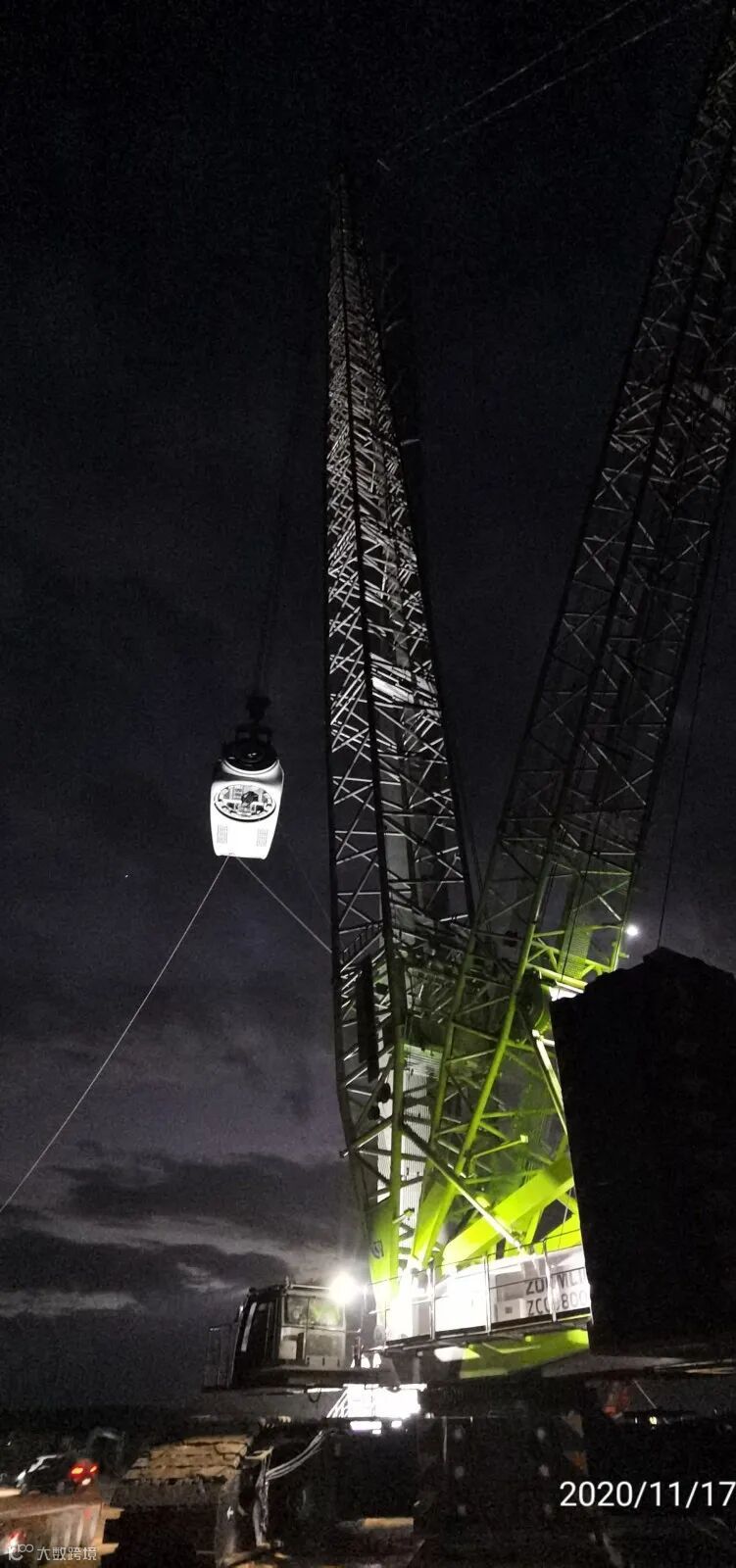 经过人员迭代,吊装设备的新引进,加上夜间作业的全面落实,风机吊装速度创造了一个又一个奇迹。目前风机吊装进度最快的机位——F14机位,转场到立杆2天1夜,风机压机舱1天,到叶轮组装完成总用时仅4.5天。在这样的加速度之下,截止11月17日,风机吊装累计完成11台,累计并网发电4台。